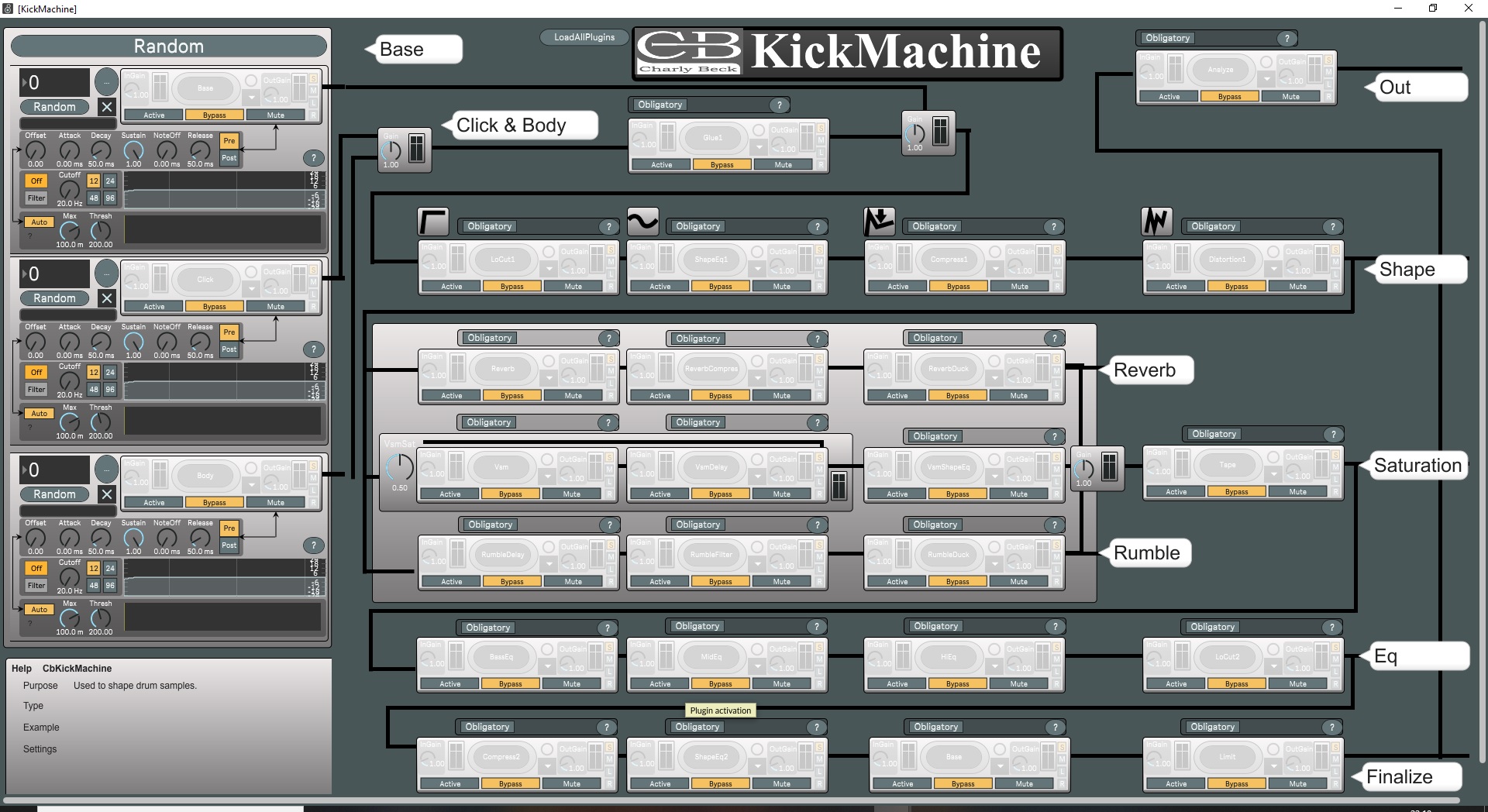 | Description: | Here's a sampler and channel strip combination to create techno kicks. It's good if you have a bunch of vst plugins if you wanna use this device. Ableton stock plugins won't work. Some innovations: - Triple sampler for base kick, transient phase (click) and sustain phase (body) of the kick. - Transient detector to remove silence at the beginning of samples - Insert vst plugins in samplers before or after the volume envelope - The Charly-Kick-Channel-Strip to hold custom vst plugins ^^ PS: Sorry for the 50 people who downloaded v0.1. The device file was missing and i got m4l problems so i couldn't just reupload in time. This is why i deleted the device. Now some bugs are fixed and new features are added. Have fun! |
