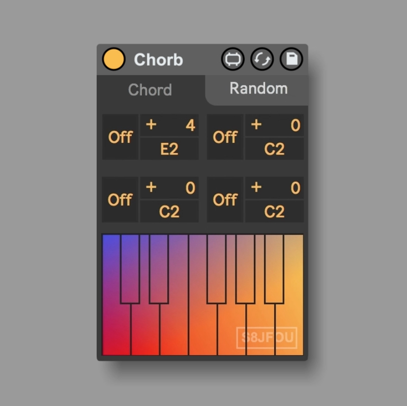 Description: Chorb is a Chord generator, simple scaler and pitch randomizer all in one.