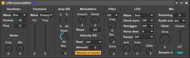 LXR snare editor controls Sonic Potions LXR snare voice.