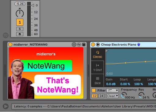 | Description: | NoteWang is the perfect tool for messing up all your MIDI notes. You'll no longer be in the infuriating position of knowing exactly what notes and chords you're playing. That's NoteWang! Click the NoteWang button to randomise your notes. They'll remain in the same position until you press the button again. Make a sequence and see how it sounds in different NoteWang arrangements. Perhaps you'll find the answer to life big questions, you may reinvent yourself completely or simply happen upon the holy grail of electronic music. That's NoteWang! Play an existing clip and press NoteWang to hear it change notes. Press it again for a totally new sequence of notes. Use it with devices like Ableton's `Scale` object and you might actually get something that sounds half decent, though nobody wants that! NoteWang requires Ableton Live 10. Please ask any questions before purchasing as I cannot UnNoteWang your purchase. Please note: NoteWang is not endorsed by or affiliated to Robert Webb, NumberWang, WangerNum or WordWang Any similarities are purely a figment of your imagination. That's NoteWang! NoteWang was inspired by the episode of the Why We Bleep Podcast with Hazel Mills and Mylar Melodies. It was also inspired by the logic of NumberWang! |