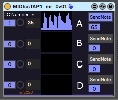 This is MIDIccPROC1 cut-down to the bare essentials: Just tap on a suitable pressure-sensitive MIDI Controller and it will produce MIDI note messages with the controller value as the MIDI Velocity.