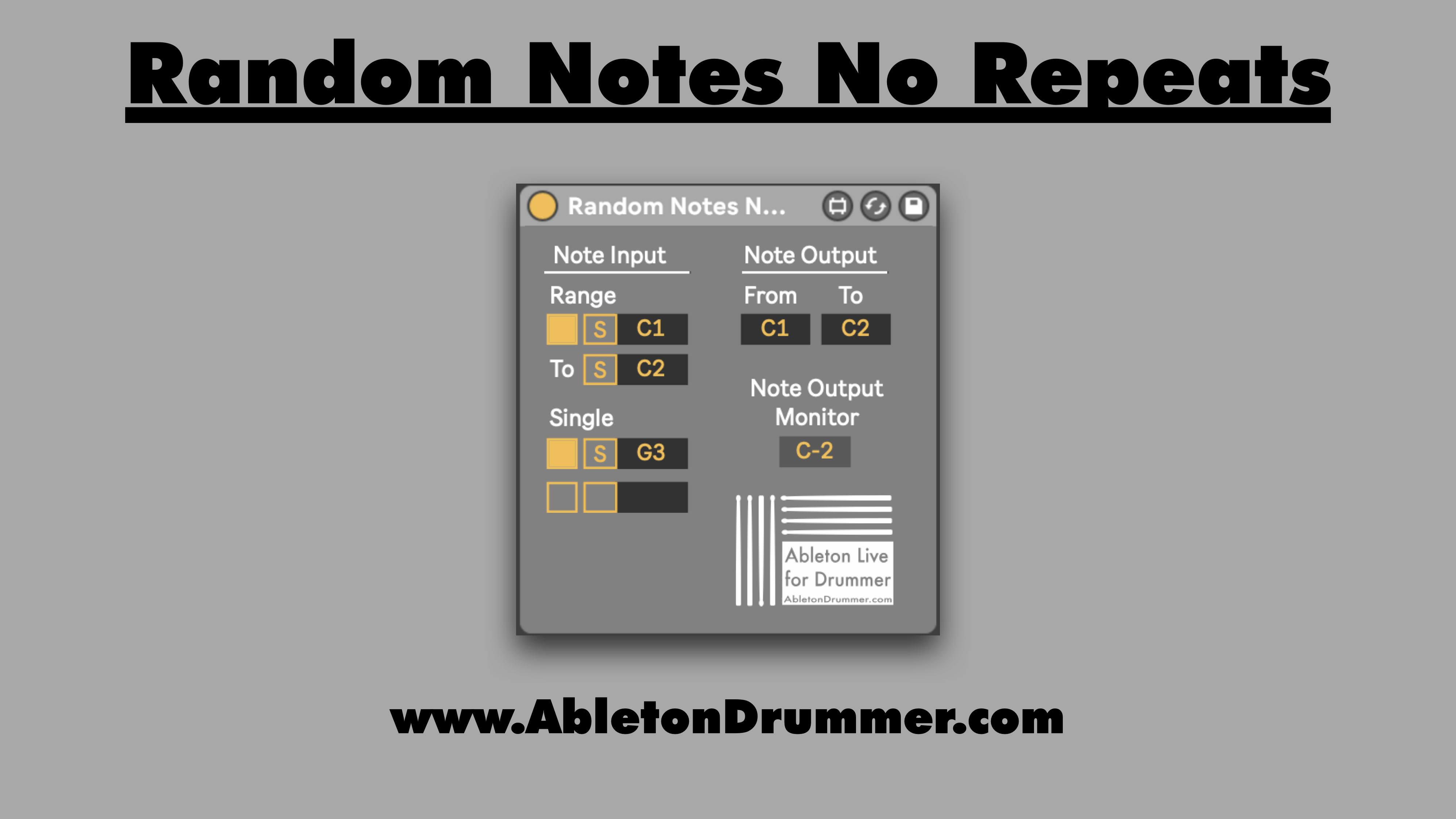 This Max for Live device puts out random note pitches inside a definable pitch range. Every note of this pitch range will be played before one note will be repeated/after all notes of the range was played. |