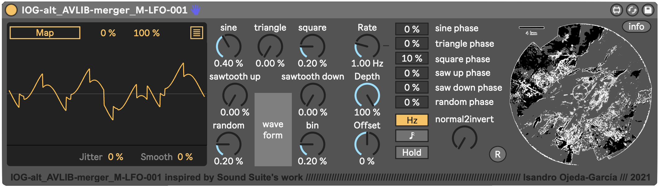 | Description: | This is my own version of LFO MIDI by Sound Suite, I just implemented a new internal system in order to merge different waveforms and have much more waveforms results that 7! Enjoy! ;) Tutorial english: https://youtu.be/zYfnWOn3QU4 Tutorial spanish: https://youtu.be/lTBdkulVPGc Tutorial french: https://youtu.be/jJh6UX6oyT4 |