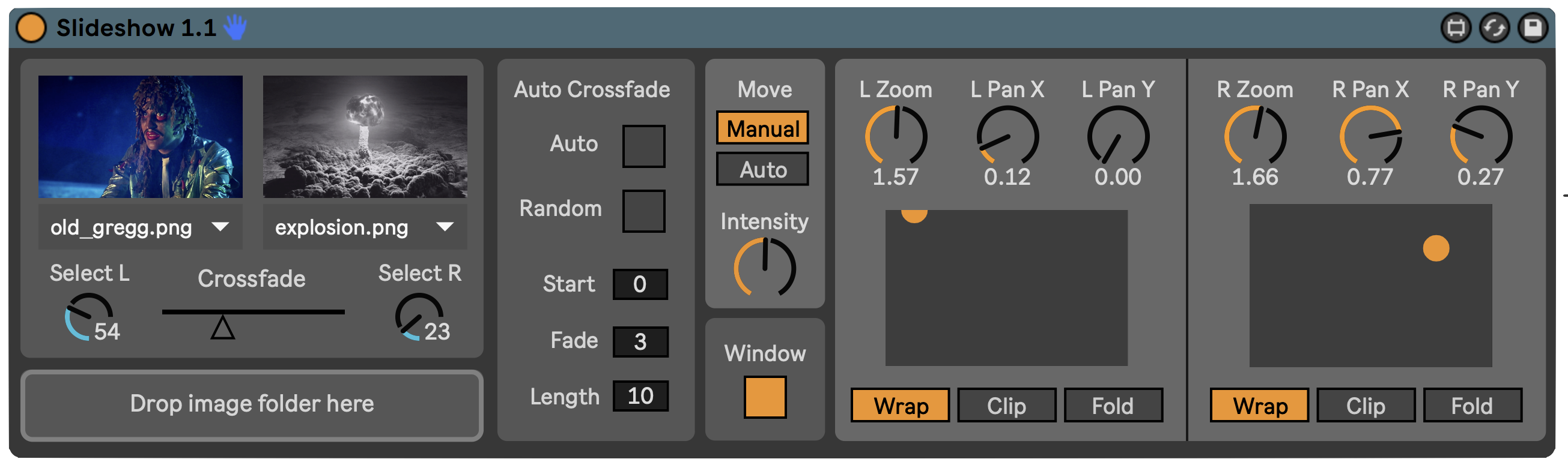 | Description: | The Slideshow device is intended for creating an automated, dynamic visual slideshow to accompany an Ableton DJ set or live performance. - MAC ONLY |