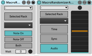 | Description: | Two devices to control the "Randomize Macro Control Values" feature in racks. Available for Live 11+ |