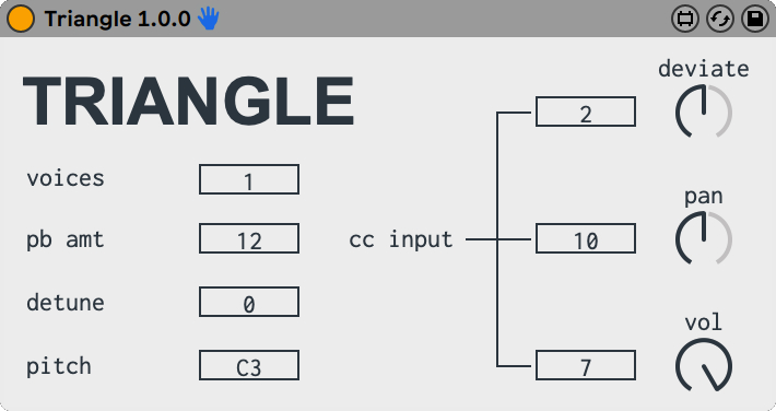 A bare bones triangle wave generator with up to 6 voices, meant to be used in conjunction with a suite of other devices, please visit the Gumroad page for more info. |