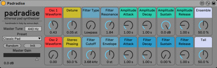 | Description: | Padradise is a a polyphonic subtractive synthesizer specialized in the creation of lush and evolving pads and textures. |