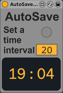 | Description: | A simple device to save your work in set intervals, super handy using unstable plugs or heavy work loads. Personally i'v lost vst settings which is super frustrating i mostly made this for me but i thought it might be useful.I just put it on my template, combined with Ableton's backup is ultimate. Toggle the float window with the button below AutoSave. EDIT - Fixed a bug regarding active window. EDIT - Updated to Live 11. |