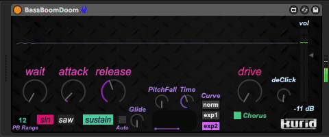 | Description: | BassBoomDoom is monophonic synthesizer for super-low bass sound. See also movie on YouTube : https://youtu.be/2c7fuTfyKhI ver1.0.1 : Added receiving pitchbend data (up to +/- 1oct) ver1.0.2 : Supported footpedal (MIDI CC64) for sustain control [CAUTION] This device emits very low frequency sound. We assume no responsibility for any damage to your equipment that may result from the use of this unit. |