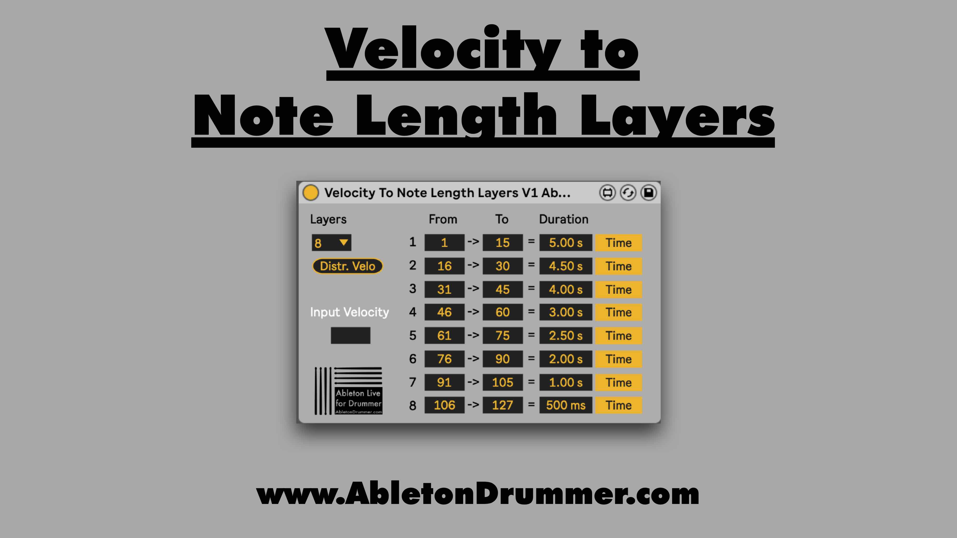 | Description: | This devices is part of the "Velocity Pack" which consists of 7 devices - check it out here: https://blog.abletondrummer.com/velocity-devices-pack---max-for-live-pack/ Velocity to Note Length Layers This device lets you set a different duration for MIDI notes depending on its playing velocity. You can create up to 8 different rows/layers for ranges of velocity and define those individually. After you selected the number of rows/layers you could click on “Distr. Velo” to distribute the velocity ranges equally over the selected number of rows/layers. You can as well edit the ranges to your individual needs BUT you don’t want to create overlapping ranges as this will result in multiple conflicting notes of the same pitch will be created. The duration values can be set in time values or in note values which will be relative to the set master tempo. More info: https://blog.abletondrummer.com/velocity-devices-pack---max-for-live-pack/ |