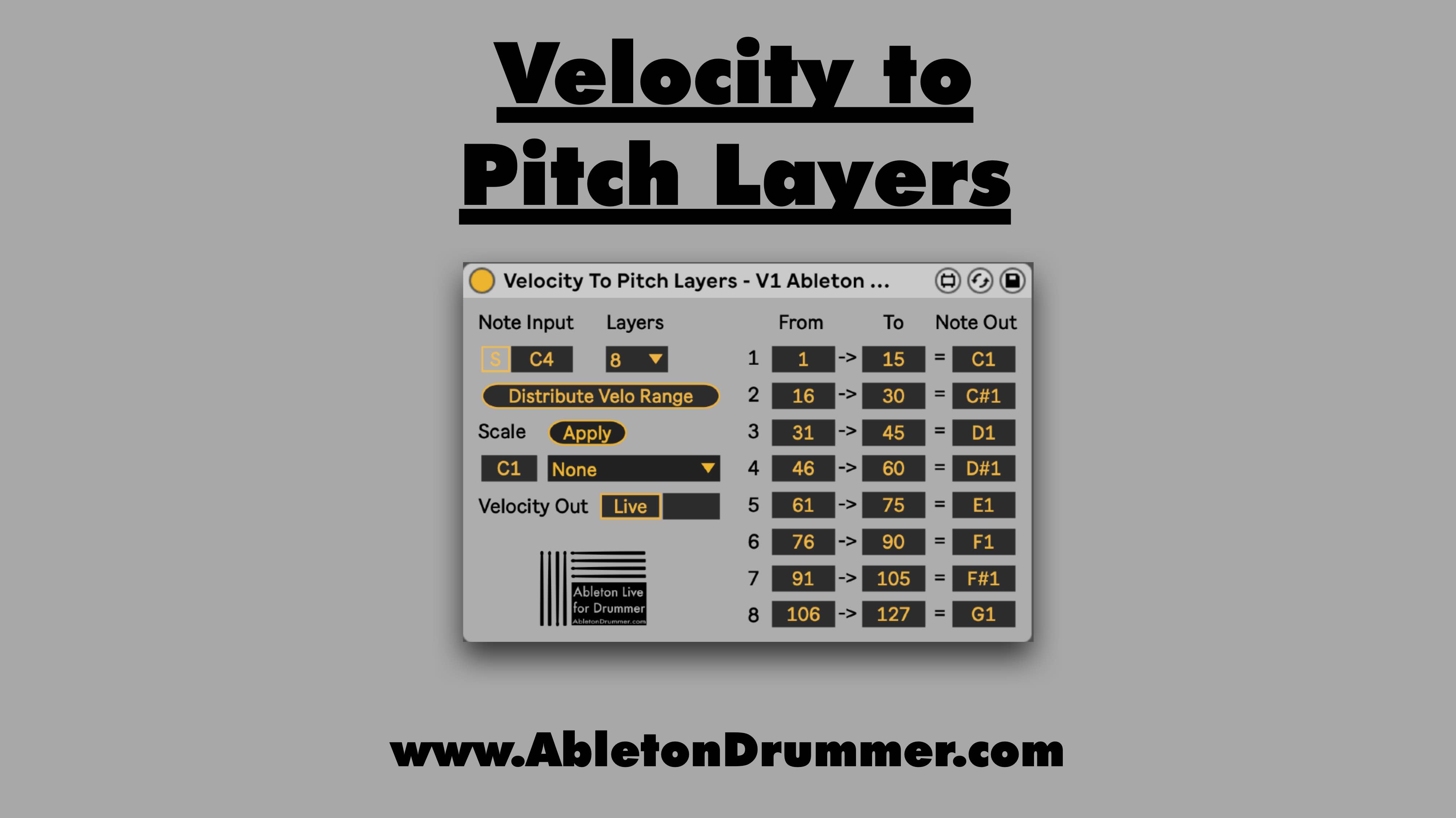 | Description: | This device lets you create different MIDI note pitches by just one note depending on the incoming MIDI notes velocity. You can create up to 8 different rows/layers for incoming velocity ranges. This devices is part of the "Velocity Pack" which consists of 7 devices - check it out here: https://blog.abletondrummer.com/velocity-devices-pack---max-for-live-pack/ |