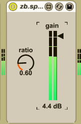 | Description: | zb.specDynamics is a spectral dynamics processing plugin. It uses exponential transfer on the magnitude spectrum obtained by an FFT. The ratio controls the type of processing; it induces compression for values less than zero and expansion for values larger than zero. The level slider controls the output volume. |
