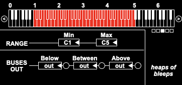 | Description: | Now available in my MIDI Split and Freeze Pack! https://stevieschmidt.gumroad.com/l/iktil This MIDI device allows you to split your MIDI notes into 3 separate ranges and send each range out of it's own MIDI bus. Set the ranges by setting the “Minimum” and “Maximum” notes. Incoming notes between the minimum and maximum notes will be sent through the “Between” Bus. Notes below and above the range will be sent to the “Above” and “Below” buses respectively. Buses can be received by my “Heap MIDI Receiver” device ( https://stevieschmidt.gumroad.com/l/VXabQe ) as well as my other devices which accept MIDI from buses. Just set them to the same MIDI bus channel. Compatible devices include: Sequential Delay Deluxe https://gum.co/OwDmm Sequencing Clock Multiplier https://gum.co/COZJj Sequencing Clock Divider https://gum.co/lUjbP Floating Clock Multiplier https://gum.co/jvpmV Integral Clock Divider https://gum.co/PYEAcT Demo Video: https://youtu.be/4OpriYpUCvk |