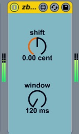 | Description: | zb.lineShift is a delay-line-based pitch shifter. It applies constant incerement in delay time to induce a constant pitch-shift. The discontinuities are avoided by cross-fading two delay lines that are out of phase with each other. It preserves the harmonic relationship between the frequency components. The shift parameter controls the constant by which the pitch is shifted (in cents 100 cents = 1 semitone) The window size parameter controls the rate of the crossfade between two delay lines. |