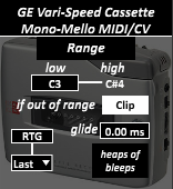 | Name | Version: | GE Vari Speed Cassette Mono Mello MIDI CV 1.0 |