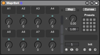 | Description: | These devices are based on the mothergarage mapper Multimapper32Audio 2.7 device: http://maxforlive.com/library/device/2348/multimapper32audio A goal with these devices is to insert these into an audio effect rack, and combine it with your favorite effects/instruments/VSTs. Then you can save these racks, and use them as favorites everywhere, making everything easier to customize and map to your favorite MIDI controller, as well as adding curve mapping, preset management, and morph capabilities. An issue with the Ableton Map8 device, is that if you insert it into an audio effect rack, and then move that rack around such as before or after another plugin on the same track, it loses its mappings, and Ableton refuses to fix this issue. You can use these devices to avoid that issue. An issue with the mothergarage device is that the XY control in the device consumes more ram, which can become an issue if you are using this device in conjunction with every effect or instrument you use. If you just want to morph between Preset 1 and Preset 2, you can simply just use the X control. If you want to morph between Preset 1 to 4, you can use both the X and the Y controls. If you still desire to see an XY control, add your favorite Max4Live XY control to a track, and then simply map those to the X and Y controls of this device. Known issues from the mothergarage version: Push doesn't correctly display the renamed dials Changes from the mothergarage version: Removal of the XY control from the presentation/display GUI look and feel changes, such as a shrink/expand buttons like Map8 Addition of an X morph dial Addition of a text box in order to name presets Change the button above the dials to map to center (64) Some changes in the MIDI control mappings Use keyboard keys "zxcv", to select the display of Bank A, B, C, D respectively, when the device is in focus In order to customize the display with a different number of dials according to your preference, the device comes in 6 different versions. Also, in order to save on resources and load/save time, some versions have a reduced number of banks. Device Naming Convention: The first number is the number of dials on the display, and the second number is the number of banks for those dials. Mapr4x2 Mapr8 Mapr8x2 Mapr8x4 Mapr16 Mapr16x2 If you're going to comment, please comment on the Mapr16x2 device to keep the comments centralized. |