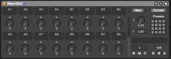 | Description: | These devices are based on the mothergarage mapper Multimapper32Audio 2.7 device: http://maxforlive.com/library/device/2348/multimapper32audio A goal with these devices is to insert these into an audio effect rack, and combine it with your favorite effects/instruments/VSTs. Then you can save these racks, and use them as favorites everywhere, making everything easier to customize and map to your favorite MIDI controller, as well as adding curve mapping, preset management, and morph capabilities. An issue with the Ableton Map8 device, is that if you insert it into an audio effect rack, and then move that rack around such as before or after another plugin on the same track, it loses its mappings, and Ableton refuses to fix this issue. You can use these devices to avoid that issue. An issue with the mothergarage device is that the XY control in the device consumes more ram, which can become an issue if you are using this device in conjunction with every effect or instrument you use. If you just want to morph between Preset 1 and Preset 2, you can simply just use the X control. If you want to morph between Preset 1 to 4, you can use both the X and the Y controls. If you still desire to see an XY control, add your favorite Max4Live XY control to a track, and then simply map those to the X and Y controls of this device. Known issues from the mothergarage version: Push doesn't correctly display the renamed dials Changes from the mothergarage version: Removal of the XY control from the presentation/display GUI look and feel changes, such as a shrink/expand buttons like Map8 Addition of an X morph dial Addition of a text box in order to name presets Change the button above the dials to map to center (64) Some changes in the MIDI control mappings Use keyboard keys "zxcv", to select the display of Bank A, B, C, D respectively, when the device is in focus In order to customize the display with a different number of dials according to your preference, the device comes in 6 different versions. Also, in order to save on resources and load/save time, some versions have a reduced number of banks. Device Naming Convention: The first number is the number of dials on the display, and the second number is the number of banks for those dials. Mapr4x2 Mapr8 Mapr8x2 Mapr8x4 Mapr16 Mapr16x2 If you're going to comment, please comment on this Mapr16x2 device to keep the comments centralized. |