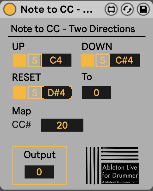 The Note to MIDI CC devices are giving you the ability to create and set MIDI CC values. This way you can control external MIDI hardware, send MIDI CC to other softwares and apps or route this MIDI back to Ableton Live. First of all you get the chance to not only have to stick to only one setting here. Just by (de-)activating devices you can set-up and switch between multiple functions for just one MIDI note to trigger. Especially for live-sets and performances you might want to use the same pad or button of your external midi controller to trigger different things in different parts of your performance. |