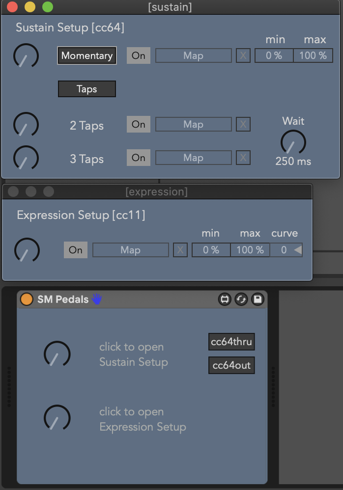 | Description: | A maxforlive utility to get the most out of your Sustain/Hold and Expression pedals, now with floating windows for greater usability. - Momentary/Toggle switch [Sustain] - Map to Live parameters, with a min/max % for the target parameter [Sustain and Expression, the latter with a curve parameter] - Map multi-taps up to 3 pedal’s taps [Sustain] - Set time for multi-taps detection [Sustain] - Fake a MIDI control change 64 [Sustain] - New: floating Setup windows |