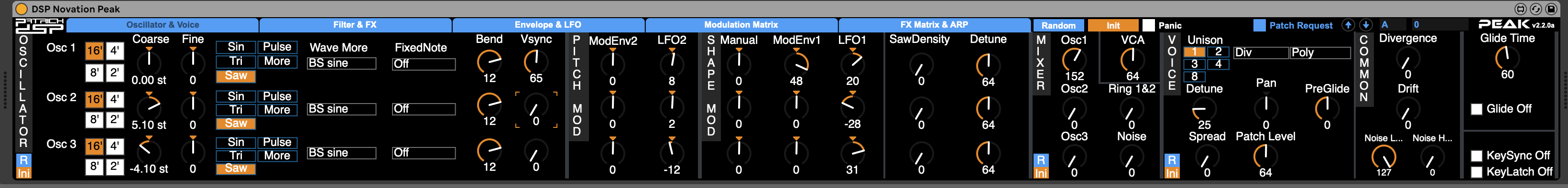 The latest peak firmware changed some NRPN’s so this version of the editor has some overlapping controls now.