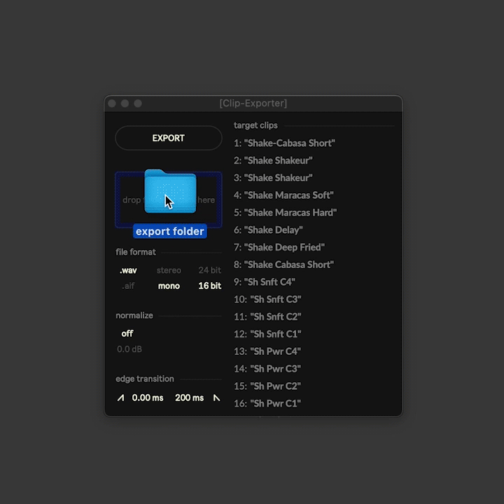| Description: | Batch exporter for audio clips in session view |