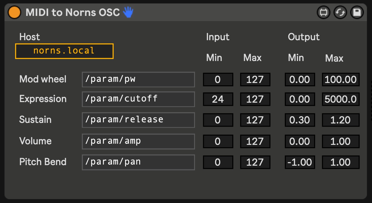 | Device File: | MIDI to Norns OSC.amxd |