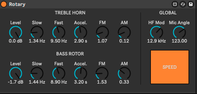 | Description: | This is a rotary speaker emulator that utilizes IRs captured from my Leslie 760 (Heil PR30 mics and UA 4-710d tube preamp). The default parameters are in the "realistic" territory, so you should be able to use it out of the box, just toggling/automating the "Speed" control. This can easily be mapped to the modwheel of a keyboard using the "Expression Control" midi device in Ableton. Of course, all of the parameters have a pretty healthy range of operation and wild and eclectic sounds can also be achieved. This is part of a bigger project to capture all aspects of my tonewheel organ. The full Ableton "pack" of the Hammond L102 (includes the sampler instrument and all effects) is available for free at https://www.pianobook.co.uk/packs/hammond-l102/ (I can't host here due to size of library and filetype restrictions) |
