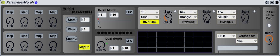 Maybe one small improvement: I noticed when saving and reopening a Live project that the numboxes values (serial morph and dual morph) were not saved. Attaching pattr to these boxes solved this; after that you have a total recall when re-opening your saved projects.