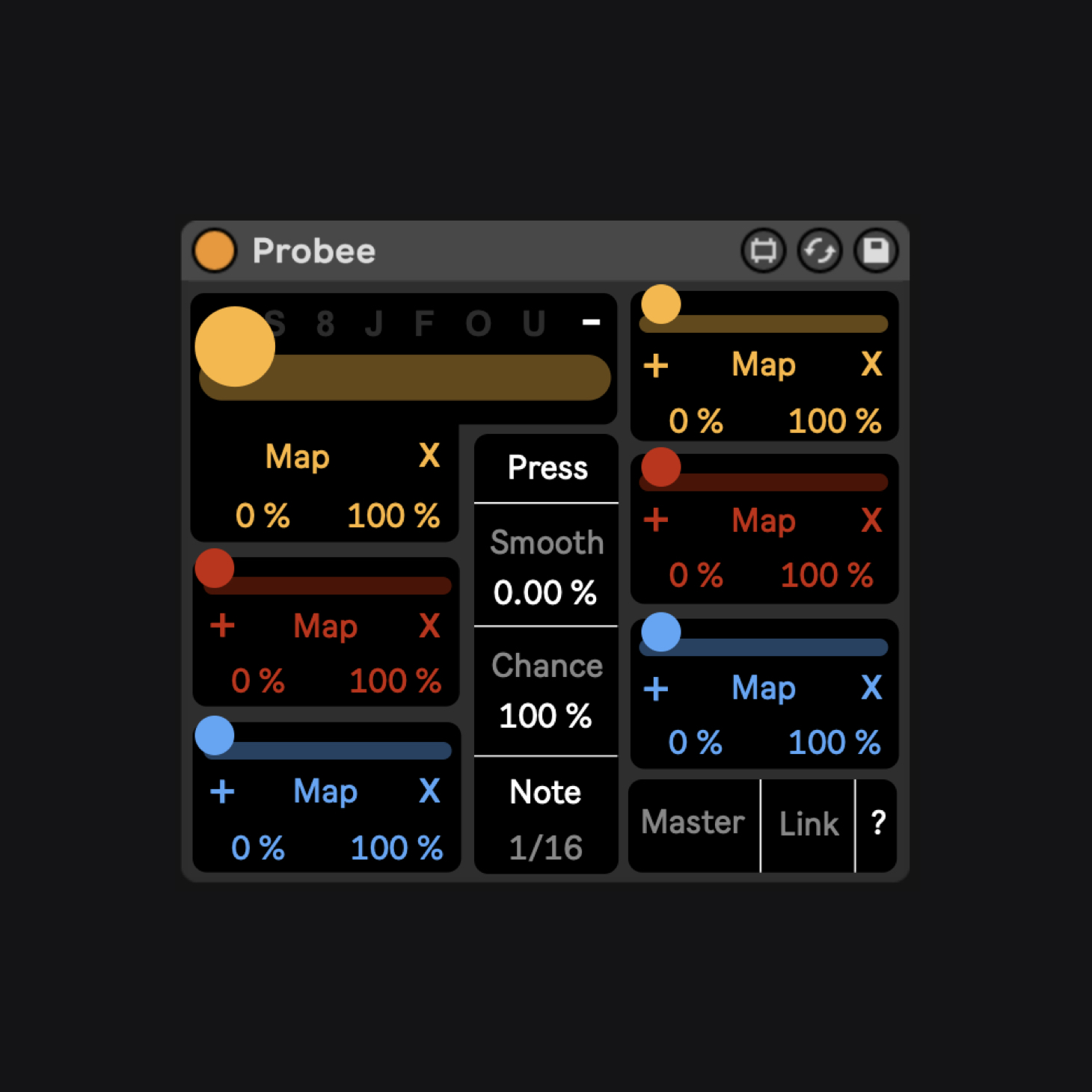 | Description: | Probee is a free random generator triggered by MIDI notes. Everytime a note is played either via the computer keyboard, a MIDI clip in Live or an external keyboard, Probee will create 6 different random values. Probee also has the following special features: - Values can be triggered by tempo with time division, - All 6 values can be identical - Select if the random values are triggered when the note is pressed or released - Add probability and smoothing between each value In the Master / Link section you can link every Probee in a Live session. For example, you can have 50 instance of Probee everywhere in your track, but all of them triggered by one kick. This demo is made with 3 mono track using exclusively Operator, Echo, and Probee. Download it for free on www.ableton.com watch the demo : https://www.youtube.com/watch?v=L0Ocbmqe0pU |