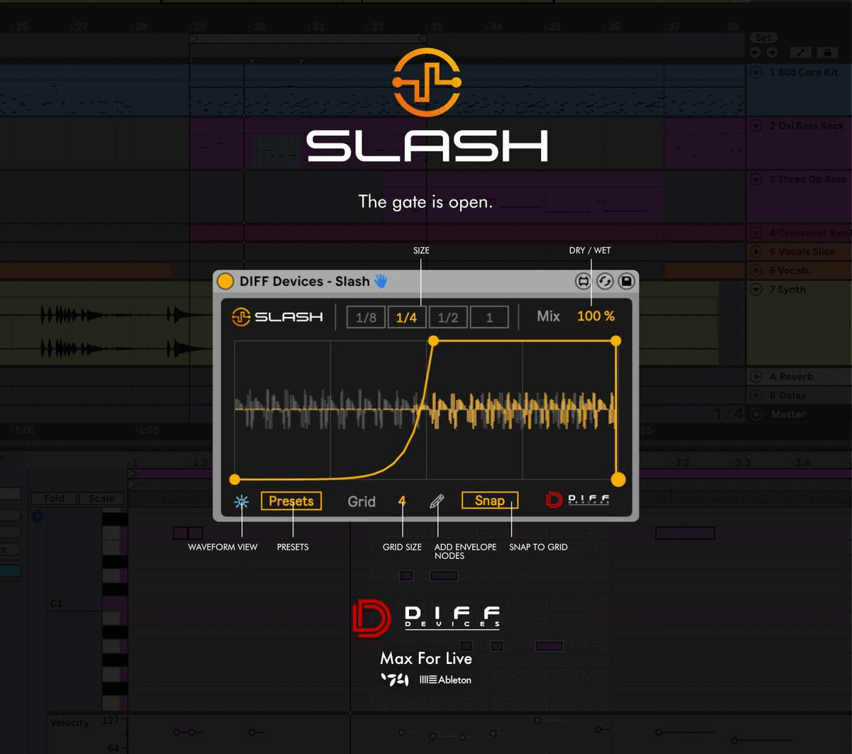| Description: | SLASH is an impressive Max for Live device for effects like sidechain, gate or simply cut your kicks which syncs to Ableton Live's transport. FEATURES: • Precise Volume Modulation • Waveform Preview (Before and After) • Sync with Ableton Transport • Function don't add points randomly like Ableton's Shaper does. • Mix the modulation with the dry signal. • GUI match Ableton Live Themes INSTALATION & USAGE GUIDE Inside the zip file you have an file : 1. DIFF Devices - SLASH.amxd 2. Save the .amxd file anywhere on your computer or in a folder that you previously saved your maxforlive devices. 3. Drag and drop the device into a midi track. 4. Click on save (on the right hand side of the window: with a 'floppy disk' icon)... (Check Manual.) 5. This will automatically save the device to your ‘User Library’ folder in ‘Places’ (the ‘head outline’ icon), and will also save a '.adv' file which can be used to store your favourite initial setup. 6. Map “Open” button to your keyboard and/or midi controller. 7. You’re good to go. SYSTEM REQUIREMENTS • MAC & WIN * Only works in Ableton Live with Max installed. * It Requires Ableton Live V11 (minimum). * M1 Mac Compatible. |