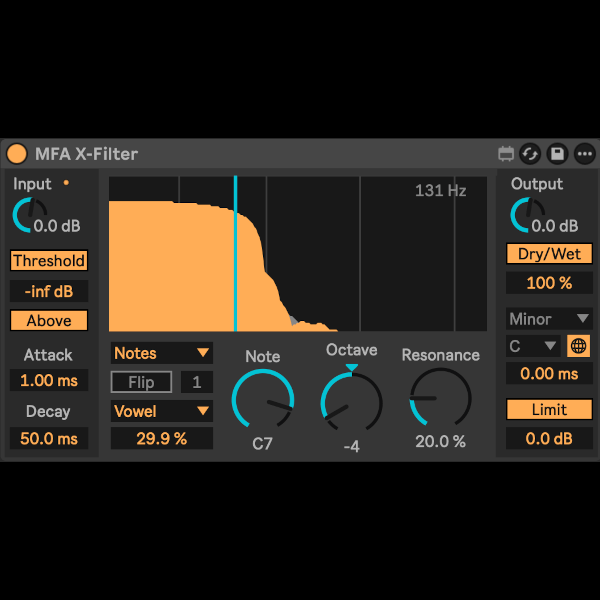 | Description: | Note-Aware Multimode Filter: Punchy, focused, and intense with a sharp, precise character, X-Filter is designed by Ableton Certified Trainer Noah Pred to helps cut through even the densest mix. It can add a sense of energy and excitement to any sound — emphasizing a searing synth solo, boosting the subs of a pulsing bass line by following MIDI notes in Relay mode, or dynamically curtailing specific harmonics on acoustic instrumentation. With its capabilities for surgical precision and extreme resonant boost, X-Filter is a surprisingly powerful creative and utilitarian tool. X-Filter is optimized for Push with full Info View annotations for further details; just hover the mouse over any parameter to view detailed information on all controls in Live’s Info View. NEW IN v2 Four New Filter Circuits: DFM, Filther, Phaseshift, and Vowel Direct MIDI Input Mode Octave Control Redesigned GUI & Numerous Enhancements Already comes included in: X-FX. |
