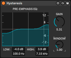 | Description: | This is a hysteretic saturation model cable of approximating transformer and tape saturation. Rather than using a linear waveshaper function, the hysteresis loop captures the behaviour of magnetic flux saturation by following a different return curve after reaching a saturated state. Tubes also exhibit hysteretic behaviour, so this is a useful tool for many analog modelling applications. The input gain controls the amount of saturation. However, it should be noted that even below unity, some level of waveshaping is being applied due to the use of hypertangent functions. The "Window" parameter scales the maximum size of the hysteresis window. In actuality, the loop window is dynamically calculated using an RMS average to simulate the flux loading. The window expands as the "core" or "tape" starts to saturate. There is also a pre-emphasis / de-emphasis EQ section so that the bass/treble response of the saturator can be accented or attenuated. The reverse EQ moves are made on the output signal, so this is primarily to tailer the frequency response of the distortion itself. As usual, this is a pay-what-you-want device, so you can name your price or download for free :) |