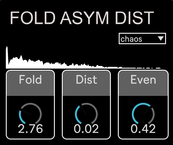 | Description: | Generates an asymmetric waveform with asymmetric distortion. Even harmonic overtones are generated unlike the usual overdrive. The first effect is three different waveshapers. waveshaper add harmonics. The third waveshaper is a chaotic waveshaper using the Lorentz equation. Fold: Wave shaper strength Dist: Distortion strength Even: Even harmonics strength Fold mode: change wave shaper mode fold:wrap:chaos |