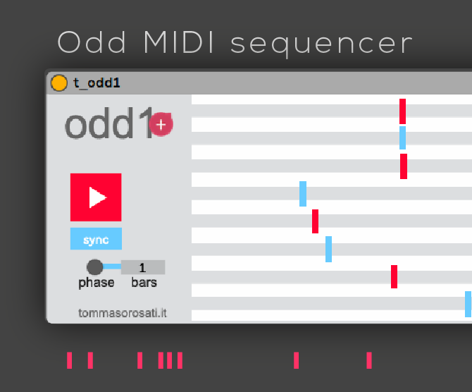 | Description: | odd1 is an 8 voices MIDI sequencer with a graphical user interface. A low value of the markers gives fast repetitions of the note. High value, slow repetitions (maximum 1 bar). You can control also the rephasing of the sequence to create interesting articulations: 1) manually clicking on the button 2) indicating a number of bars after which the sequence returns to phase It works both in free and sync, quantized mode. VIDEO DEMO: https://youtu.be/7yzIzhfGxLs |