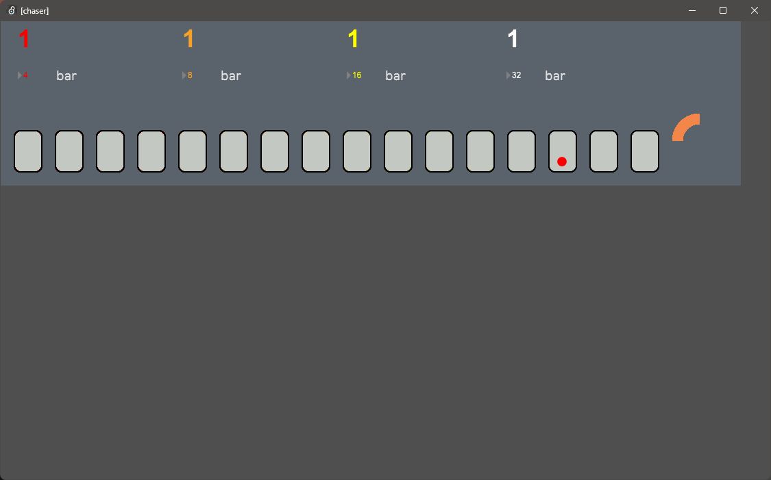 lighter version of a simple 1/16 beat LED chaser with 1/4 beat indicator and bar count for live performance