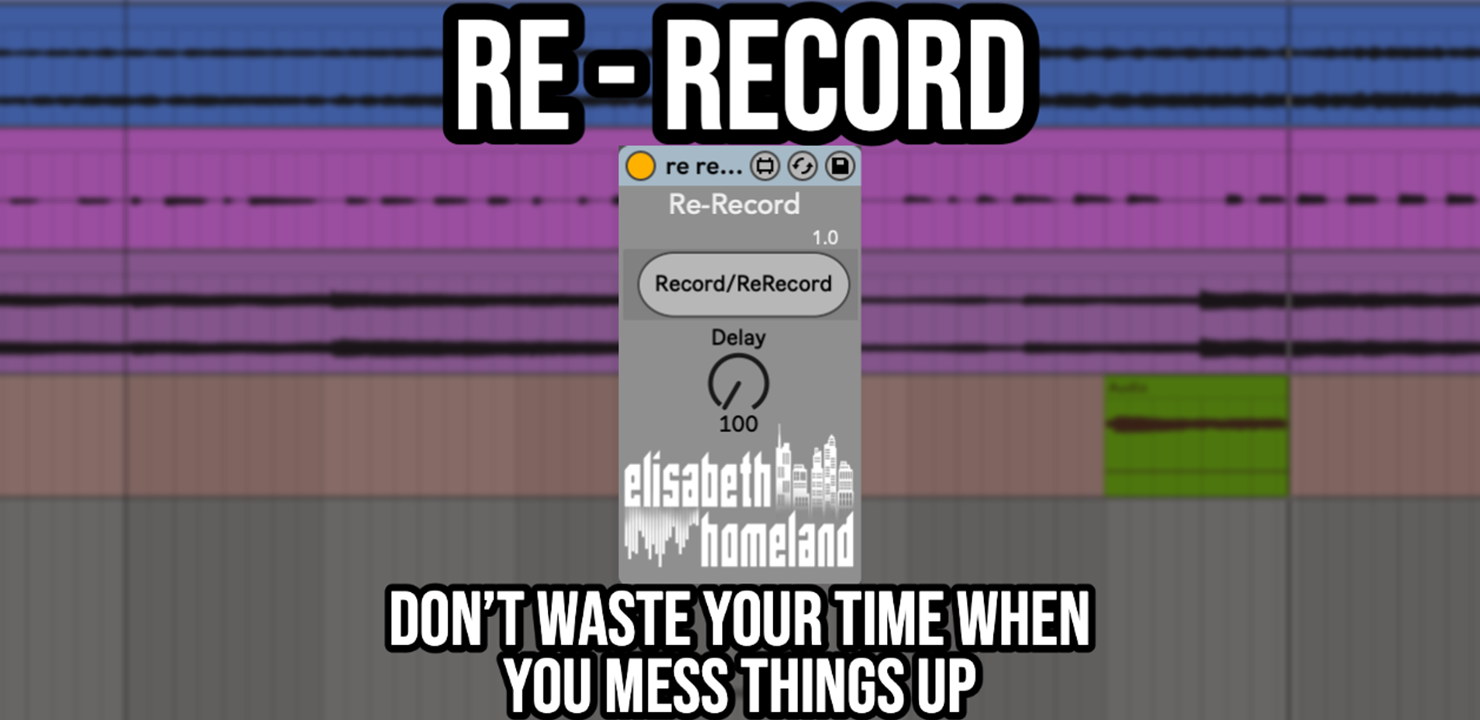 | Description: | Re-Record is a small MaxForLive device that helps you move quicker during recording. http://www.elisabethhomeland.com When you key-map the original record button in live, if you mess things up and want to try again you need to do the following steps: -stop the recording, -delete the previously recorded messed up take, -select the position where you want to start the new take, -press the record button again. But with re record this process is a lot quicker: Map the Re-record button to a key. When you press it the first time it'll start the recording, and if you know you want to start again, just press the keyboard shortcut again (to restart immediately) until you're happy with your performance ( then press space ): If Count-in is enabled in your project Re-record will wait for the defined measure (like when you record normally with count in) , if it's not, you can define a delay value (in ms) before the next recording. |
