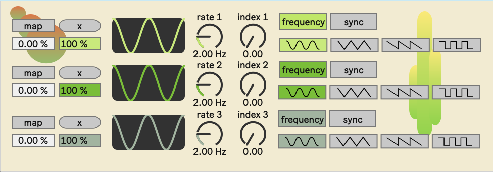 | Description: | sonora is a complex modulation source of 3 interconnected LFOs. Inspired by FM synths, sonora applies this architecture to modulation rather than audio rate sources. The LFO modulation occurs in a feedback loop: LFO 3 --> LFO 2 --> LFO 1 --> LFO 3 Each respective index knob controls the amount of FM for the target LFO. Pairs well with sound sources that have an ample number of parameters such as Operator, Wavetable, and plox! https://maxforlive.com/library/device/6007/plox |