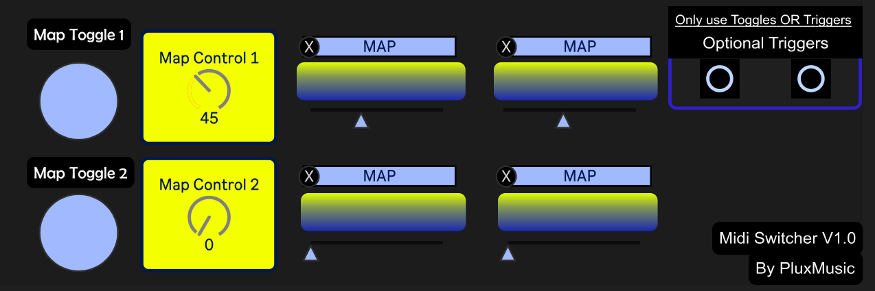 | Description: | I made this device to remove the limitations created by smaller controllers. Essentially, this lets you control 2 parameters from the same "knob" or "slider", switchable by a trigger. I intend to delve deeper and make this track-dependant instead of triggered by a button, but since this is my first M4L device I settled for now. Reach out to me at patrick@pluxmusic.com for any issues or guidance on how to use this. |
