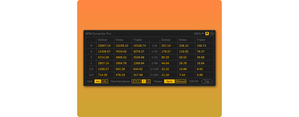 | Description: | BPM Converter Pro converts BPM values to milliseconds (ms) and hertz (Hz). Unlike the free version, it is displayed in a floating window. Main features: - Values updated automatically with the tempo of the project. - Ability to set the tempo value manually. - Tap Tempo control available in manual mode. - Display of up to 3 decimal places. - Button to show the floating window is mappable. It is possible to assign a keyboard key to open and close it. See details and changelog at: https://killihu.vstskins.com/bpm-converter-pro/ |