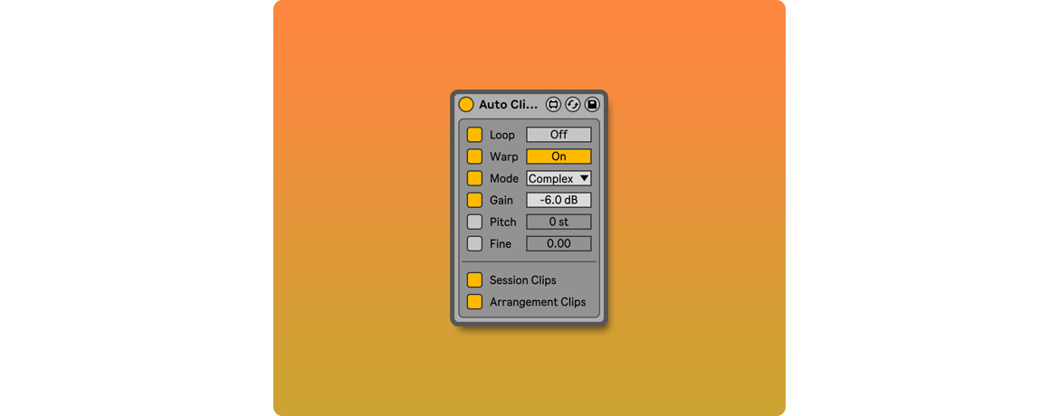 | Description: | This device automatically sets the properties of all clips on the track. This includes both existing clips and new clips dragged or recorded to the track. For example, you can use multiple instances of the device on different tracks to automatically adjust the warping of clips you add. So that the Warp Mode of the percussion track clips is in Beats, the instrument track clips in Complex, or the track where you record vocals has the clips with warping disabled. Values assigned to clips are total, not relative. If you set the Gain to -6.0 dB you will not reduce the volume of each clip by 6 dB, all clips will have a value of -6 dB. So the use of the device is recommended for initial tasks in which content is added to the project. Then, when you start developing your project, you can turn off the device to independently adjust the volume of each clip. In session view, the device detects clips added or moved in the first 64 slots. Adding or moving clips to subsequent slots will not adjust the properties automatically. See details and changelog at: https://killihu.vstskins.com/auto-clip-props/ |