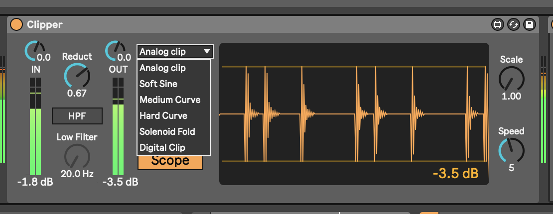 | Description: | Hard clipper patch for Live to control nasty transients. With Scope and low frequency by-pass. UPD 1.1 Live Saturator included (Max9 required to work) See video https://youtu.be/Sv7t2IagMcw |