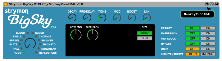 | Name | Version: | Strymon BigSky CTRLR by MonkeyProofM4L 1.0 |