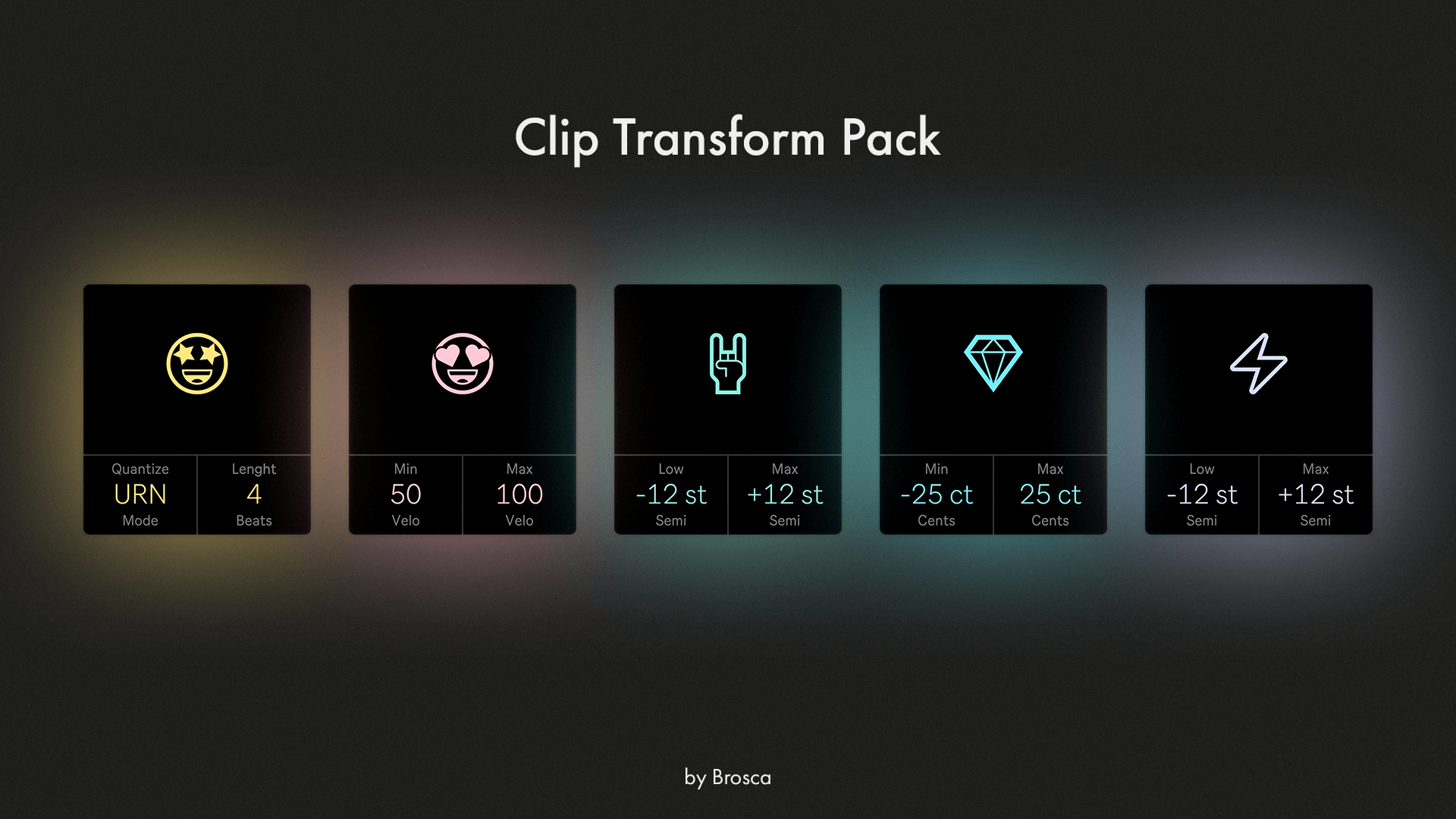 | Description: | Five game-changing devices for live 11, live 12 soon. Improve your workflow! Take a new look at creating chops, drums and percussion, sampling and re-arranging your loops, save a lot of time, generate ideas and change your tracks on the fly in one click. Preview: https://youtu.be/RjXLTfwI5mg Short description: - Clip Shifter - Randomly shifts the start marker of each audio clip on the track. - Clip Stager - Randomizes the volume of each audio clip on a track. - Clip Tuner - Randomizes the pitch of each audio clip on a track by semitones. - Clip Tuner Jr. - Randomizes the pitch of each audio clip on a track by cents. - Clip Drifter - Randomizes the tempo of each audio clip on a track, stretching the audio within the clips using the Re-pitch algorithm. Pack contains: - 5 Max devices (.amxd) files. - Guide images (.png) files. Available now at: https://boosty.to/brosca |