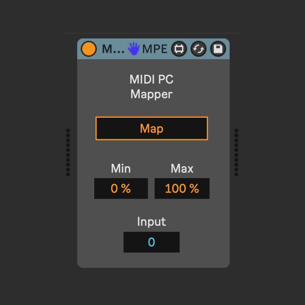 | Description: | MIDI PC Mapper is a simple Max For Live device which allows you to accept an incoming MIDI Program Change message and map it's value to any mappable parameter in Live. Get it here: https://inz1.gumroad.com/l/midipcmapper Example use case: While there are many uses for this my immediate need for creating this is to allow me to map MIDI Program Change messages received from my Roli Seaboard Rise 2 to the Chain Selector in a rack. This allows me to structure racks in a way which resembles changing presets on my synths and I can match and recall sets of settings across hardware and software by pressing the program change button on my Seaboard. ie: If my controller sends midi program change message 49 all my gear will jump to preset slot 49 and the Chain Selector in my Live racks will jump to 49 simultaneously activating the chains that are assigned to that slot on the chain and bypassing all other chains. So far I have mostly used it with MIDI Effect Racks, in order to recall chains of MIDI Effects which manipulate patch layering, note splits, ranges, midi filtering and MPE control curves across multiple MPE capable hardware synths. These racks consist of MIDI devices such as Pitch, Scale, MPE Control, MIDI Filter and External instrument devices for each piece of hardware I am controlling from the single controller. This allows me to customize how each hardware synth responds to my single Seaboard, as well as splitting which notes route to each synth... including some layering at custom intervals. I am also passing the MIDI program change messages to some effects pedals within the racks as well. This often involves racks within racks. With the top level rack acting as the chain/rack selector that is responding to the MIDI Program Change messages and selecting the chains containing my midi processing racks with different settings. In a performance context, my groups of patches/racks/settings for each song will be organized sequentially, then in between songs I can simply press the program change button up on my seaboard to immediately recall my next set of patches/racks/settings across both hardware and Live for the next song. In this current setup I am simply using Ableton Live as an advanced MIDI manipulation processor while all audio is being done with hardware synths and effects. I am sure in time I will use this device to take the same approach with audio FX and Instrument racks within Live. Lot's of potential here. This of course can apply to any external hardware controller that can send MIDI Program Change messages and is not MPE specific. I've included Min/Max range selectors for the mapping. Just a note that adjusting these will scale the output and of course alter the output value compared to the input value. For my current setup described above I wouldn't want to adjust these. But I included them as I can see future use cases where I may want to scale the output values differently. I then included an input display so it's always clear what program change message number is being received from my controller. Here is what one of those racks I'm currently working with look like if you are curious. Get in touch if you have any questions or want more information. https://i.imgur.com/iWKM6Ds.png |