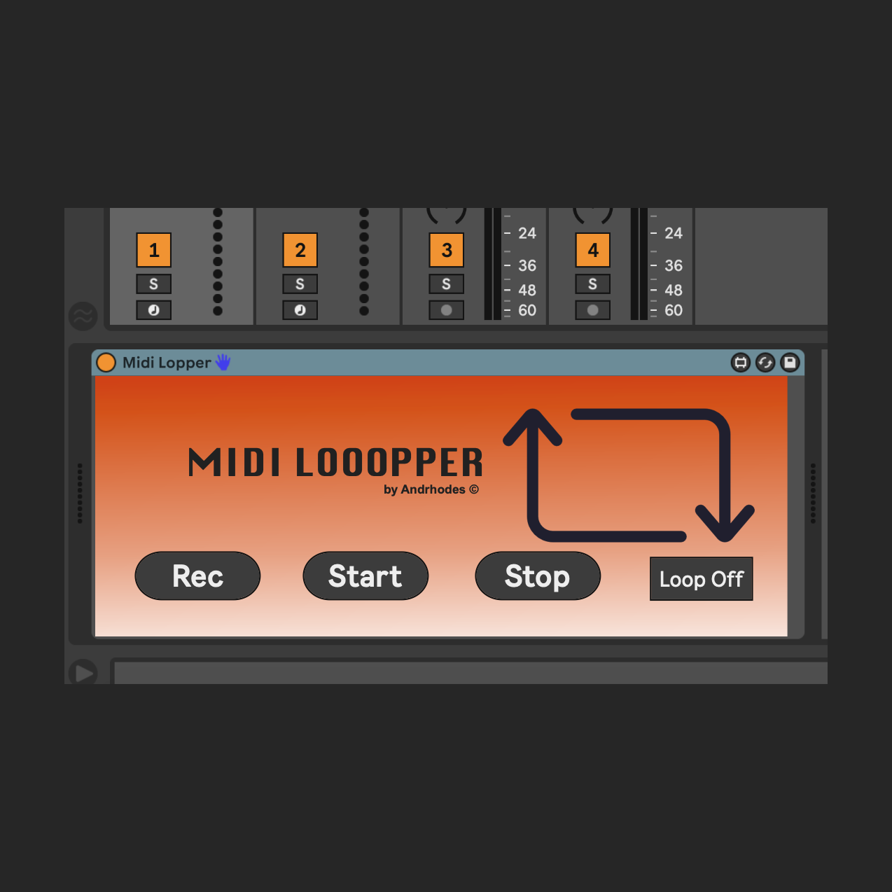 | Description: | A super simple looper! Record your midi events and have fun changing sounds in post! |