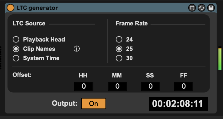 This Max for Live device generates Linear Timecode (LTC) dir...