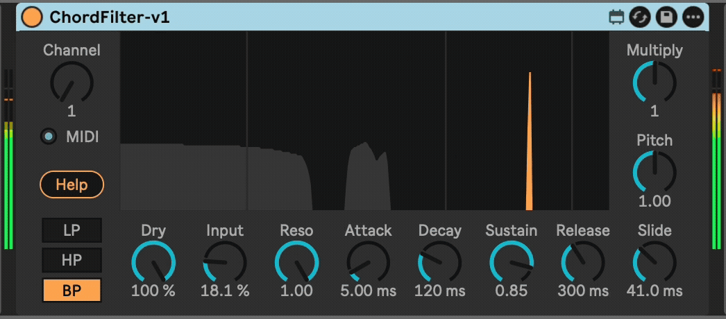 Use MIDI notes to control up to 10 filters. The note pitch c...