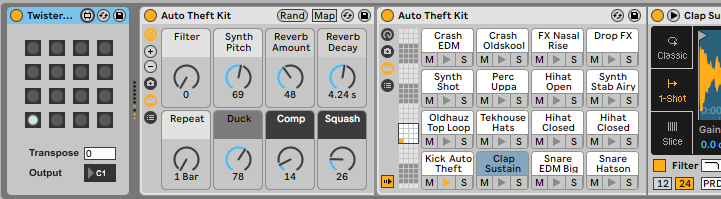 Play the Drum Rack with Midi Fighter Twister by pressing dow...