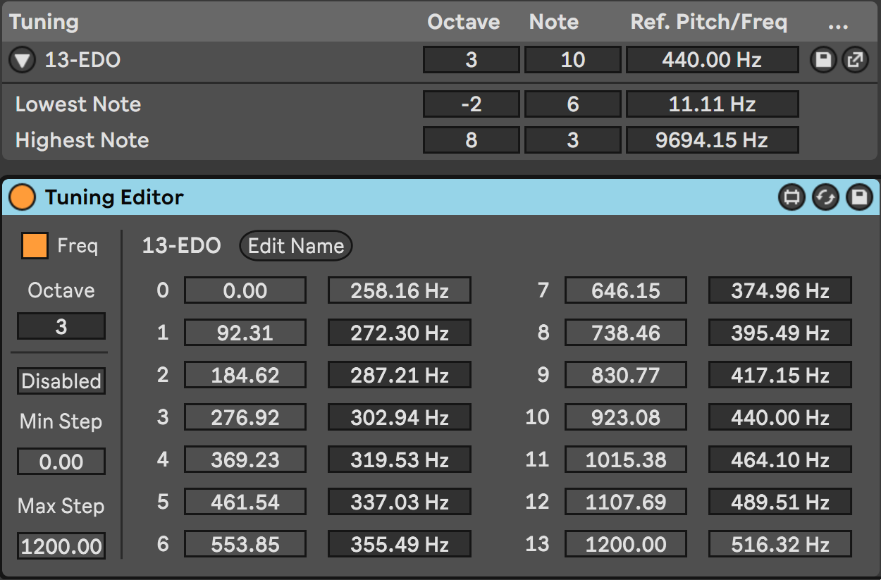 Edit the Live sets native tuning system steps in real-time....