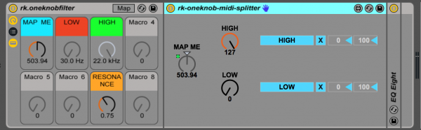 Single knob DJ-style hi-pass and low-pass filter1.0
